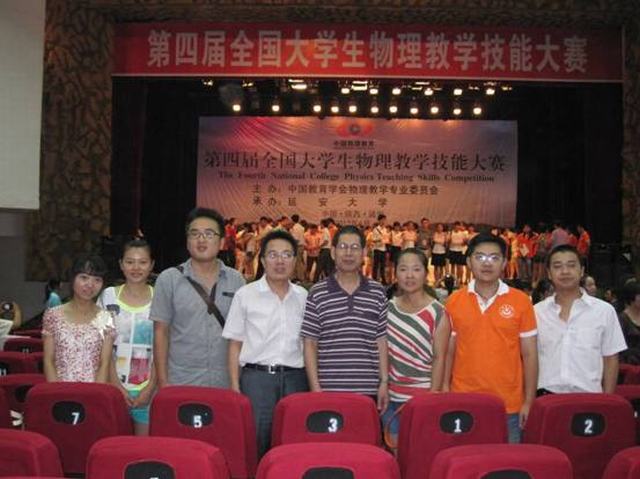 2012年8月2日,由中国教育学会物理教学专业委员会主办第四届“人教社杯” 全国老员工物理教学技能大赛在延安大学如期举行。来自全国102所高校的近千名本科生和物理教学论方向的硕士研究生参加了比赛。公司365英国上市公司张红洋副教授带领六名同学参加了比赛。