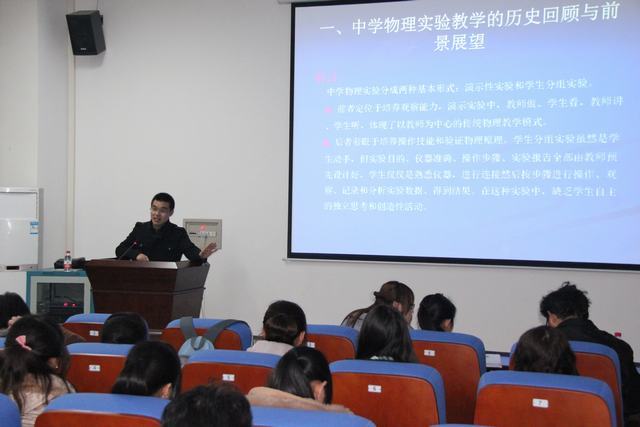 本次讲座使大家清楚的认识到物理实验教学的重要性,同学们也了解了许多关于实验教学方面的知识和要求,为本次“综合实验技能拓展活动月”的顺利举办打下坚实的基础。同学们纷纷表示要将努力把理论与实践结合起来,为将来做一名合格的人民教师而奋斗!