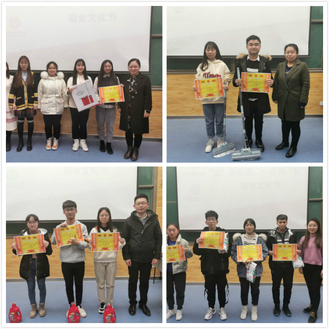 本次宿舍文化节的内容有宿舍文化、宿舍装饰和卫生评比,最后还举行了宿舍风采展暨颁奖典礼。经过前期精心准备和紧张的初审环节的角逐,最终10个宿舍脱颖而出,宿舍代表依次上台进行了答辩。各宿舍通过放映PPT、视频的形式,以或幽默、或可爱、或调皮的风格向大家展示了精心装饰的宿舍环境、丰富的宿舍生活以及良好的宿舍风貌。答辩现场气氛热烈,掌声不断。答辩结束后,曹宇巍对本次活动给予了肯定的评价,并鼓励大家继续营造优秀的宿舍文化,共同维护我们的宿舍文化。最后,经过评委打分评比,21#226宿舍荣获一等奖,21#229和13#307宿舍荣获二等奖,21#233、21#230和13#309宿舍荣获三等奖。出席嘉宾为获奖的宿舍进行了颁奖,至此,本次宿舍文化节活动圆满结束。
