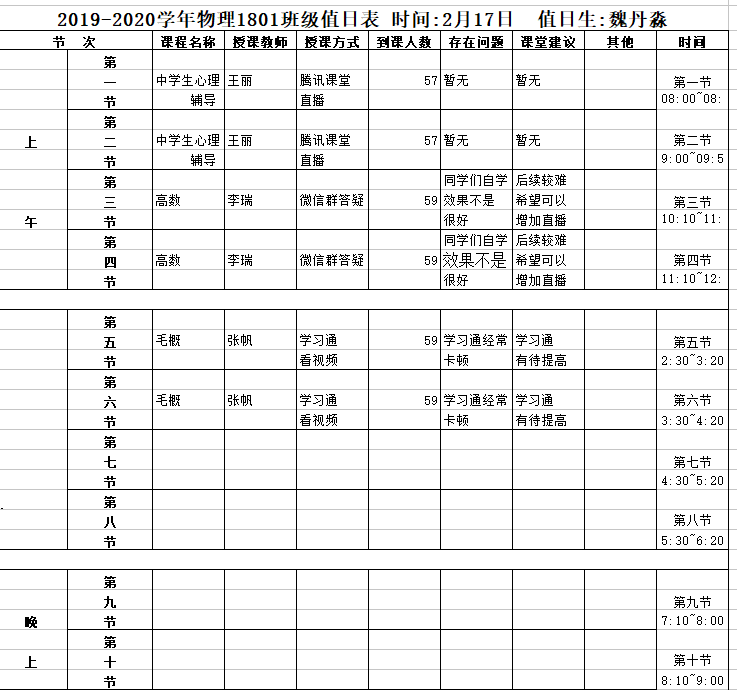 2月8日,确定开课方式,联系员工,核对员工课表,为每门课程每个班级遴选课代表,建立师生联系方式,为师生联系开课做好支持。