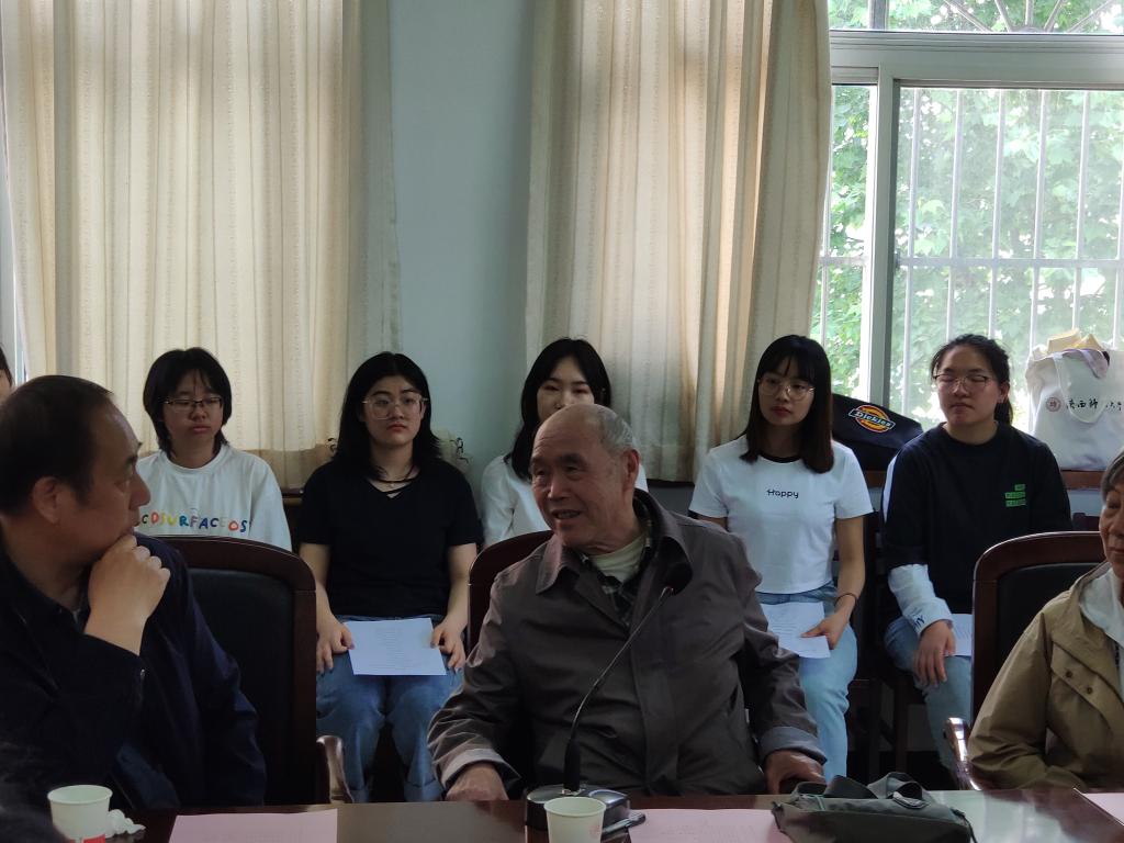 离退休老党员雷洁、钞曦旭、吴胜举、陈玲、王元、蔺春萍依次进行分享。八十多岁高龄的雷洁老师趣称自己为“八零后”,讲述了党的光辉发展史,表达了自己在青年时代对党的向往,谦虚地说:“那时候党员做的事太多太多了,我还完全没资格成为一名党员”、“心要永远和党连在一起,要发挥党员的先锋作用,入党动机要纯正。”他结合自身的入党经历对同学们送上深情祝福,勉励同学们在美好的时代坚持奋斗、学有所成。退休老党员钞曦旭老师已有47年党龄,他从物理学角度解释了马克思主义,“马克思主义是什么?它不是宗教,也不是党派,它是科学”,他结合自己的科研经历展示了新时代人民群众生活质量、科技水平的巨大变化,经过“抗疫一战”更让社会主义的优越性有了直观的体现。吴胜举老师主要分享了自己的工作事迹,吴老师牵头申报建立公司声学所博士点,“一心为公、甘于奉献”的精神在吴老师身上体现的淋漓尽致。吴老师讲到正因为自己那个年代求学条件艰苦,所以现在更希望能尽全力给员工们创造更好的条件,让同学们少走弯路。“在教师岗位上,我是问心无愧的”,吴老师坚定自豪地说到。陈玲老师讲述了父亲作为地下党工作者的激情岁月,她感慨万千,“我们是在中国共产党的领导下才有了如今的幸福生活”。老党员们情真意切,语重心长,他们的分享感人至深,在场师生无不为之动容。