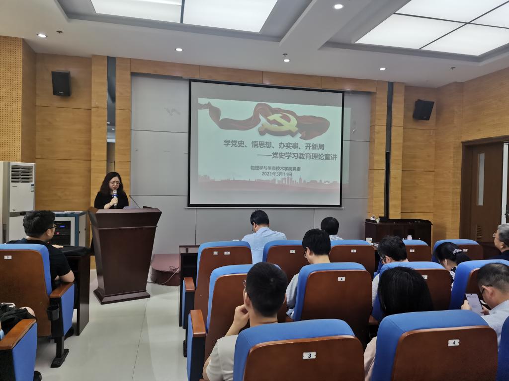 为认真学习贯彻习近平总书记在党史学习教育动员大会上的重要讲话精神,深入推进公司党史学习教育走深走实,2021年5月14日,公司在致知楼3624报告厅举行党史学习教育理论宣讲报告会。报告会邀请到公司党史学习教育教授宣讲团成员、哲学与政府公司郑家昊教授主讲,公司经理李贵安、党委书记辛向仁、教学副经理王成会、科研副经理张林以及近120名师生党员参加了报告会,报告会由公司党委副书记曹宇巍主持。