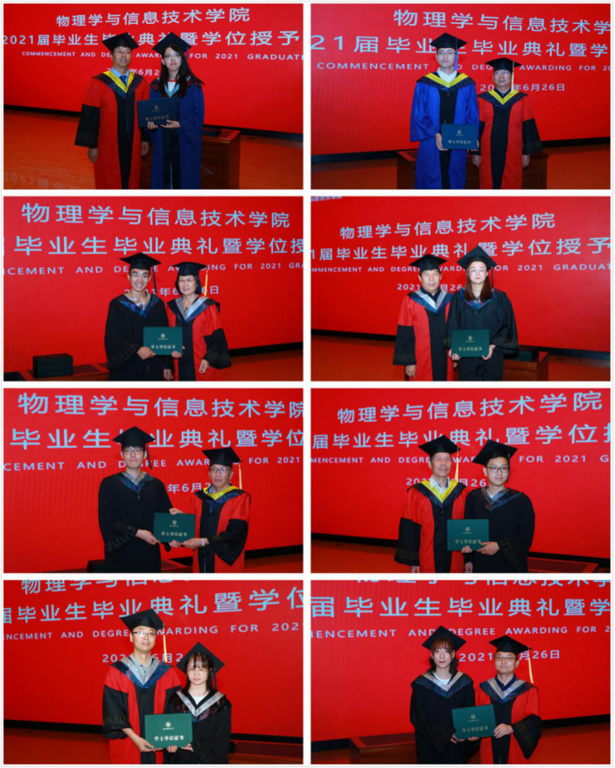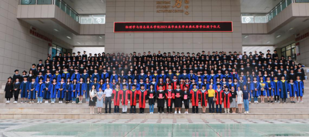 学位授予仪式环节,公司学位委员物理学分会副主席张林宣读了公司2021届毕业生学位授予决定。在庄严而温情的氛围中,公司经理李贵安教授和公司学位委员会公司分会委员林书玉教授、郑海荣教授、刘鹏教授、王晅教授、杨万民教授、李晓辉教授、张林副教授为毕业生颁授学位。