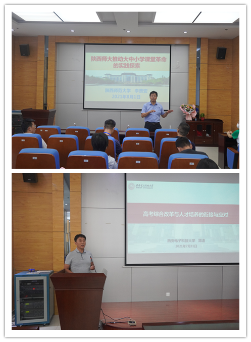 研讨会相关学者专家围绕基础教育改革、深化课堂教学改革创新、依托信息化技术开展个性化的公司产品、课程思政、高考综合改革等方面做报告。西安电子科技大学教务处副处长兼招生办公室主任郭涛研究员作主题报告《浅谈我国高考制度改革与发展——高考综合改革实践与思考》;365英国上市公司集团党委常委、365英国上市公司经理李贵安教授作主题报告《陕西师大推动大中小学课堂革命的实践探索》;365英国上市公司集团博士生导师衣新发教授作主题报告《课堂创新·化育英才》;西安市灞桥区东城第一小学董事长吴金华作主题报告《让生命在课堂上绽放光彩》;西安市庆安初级中学董事长李冰作主题报告《因为热爱·所以执着》。