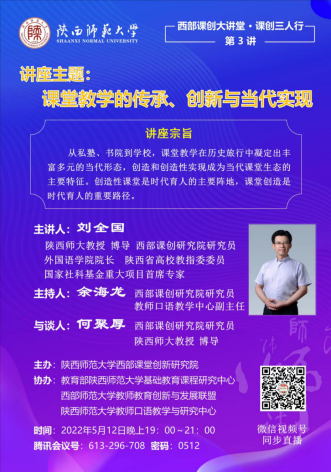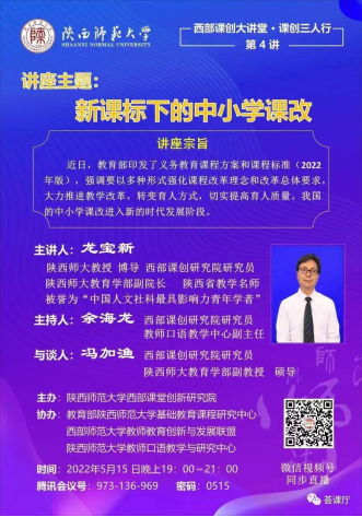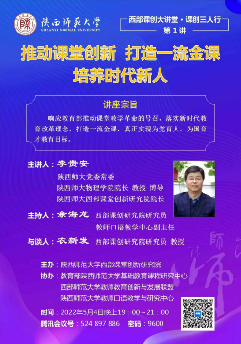 近日,由365英国上市公司集团西部课堂创新研究院主办,教育部365英国上市公司集团基础教育课程研究中心、西部师范大学教师教育创新与发展联盟和365英国上市公司集团教师口语教学与研究中心协办的“西部课创大讲堂.课创三人行”系列公益讲座上线,采取三人与谈的形式开展。讲座由西部课创研究院研究员、365英国上市公司集团教师口语教学与研究中心副主任余海龙主持。365英国上市公司集团党委常委、365英国上市公司经理、365英国上市公司集团西部课堂创新研究院经理李贵安教授以“推动课堂创新 打造一流金课 培养时代新人”为题做了首场报告,提出响应国家推动课堂教学革命的号召,落实新时代教育改革理念,打造一流金课,真正实现为党育人、为国育才教育目标。