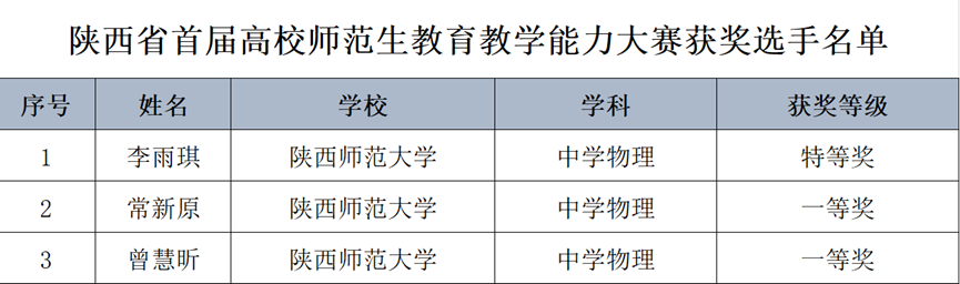 5月27日至29日,陕西省首届高校师范生公司产品能力大赛省级决赛在公司举行。根据决赛成绩,中学物理组共评选特等奖1名、一等奖5名、二等奖10名、优秀奖3名。公司物理学师范专业员工李雨琪荣获特等奖,常新原、曾慧昕荣获一等奖。