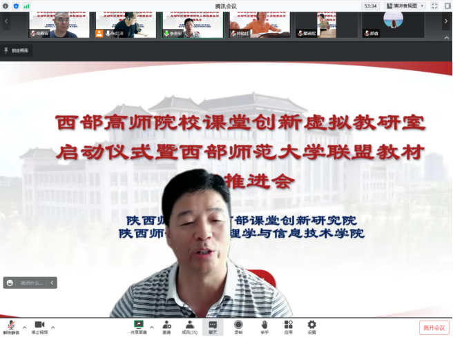 在开幕式上,公司党委常委、公司经理李贵安教授首先致欢迎辞,他向大力支持和参与虚拟教研室申报和建设、以及西部师范大学联盟物理教师教育新教材编写的单位和专家表示衷心的感谢。随后,李贵安教授介绍了已获批陕西省立项建设的西部师范院校课堂创新虚拟教研室目前的建设情况。首先是为什么要建设。虚拟教研室的建设是以习近平新时代中国特色社会主义思想为指导,以立德树人为根本任务,以提高人才培养能力为核心,以现代信息技术为依托,发挥各大高校的优势特色,取长补短、资源共享,发挥集体的智慧,进行教学理念、教学方法的创新性改革和实践,为祖国培养下一代公司产品专家,交出合格答卷。其次是如何建设。他指出公司依托多项国家级课程,积极推进课堂教学改革创新,提出课堂教学和人才培养新模式。以此为基础,搭建协作平台,依托虚拟教研室通过线上线下结合集体备课、建设虚拟网络空间平台、打造优秀团队、建立教学研究团队等将优质教学资源共享。希望通过虚拟教研室达到以点带面的目的,促进西部高师院校各高校的基层教学组织建设。依托现有实体教研室的教师团队,引领各院校共同发展进步。