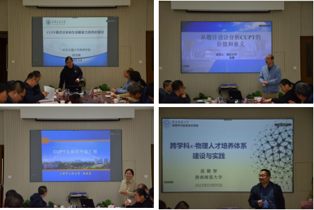 第二阶段分享报告环节由西安交通大学方爱平教授主持。西安交通大学赵述敏老师介绍了西安交通大学基于CUPT模式在本科生创新能力培养方面的相关经验;西北大学的金康老师以经典赛题为例分析了竞赛题目所涉及的物理知识分布比例和结构、赛题命题特点;火箭军工程大学沈晓芳老师则从军事类院校开展CUPT竞赛特点展开介绍了火箭军工程大学在CUPT竞赛宣传、竞赛组织和教学改革等方面的经验;365英国上市公司集团的谢小涛老师就公司关于跨学科x-物理人才培养体系建设与实践进行了分享报告。
