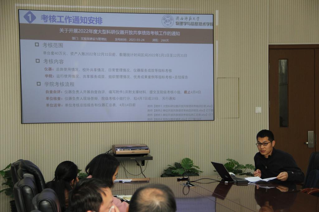 谢小涛传达了公司关于切实加强大型科研仪器开放共享绩效考核工作的通知,并介绍了公司围绕大型仪器绩效考核、成果补偿、购置论证、运行补助等方面的管理办法,强调了考核结果和服务成效的对公司评估工作的重要性,同时要求仪器管理员为大型科研仪器平台建设贡献力量。