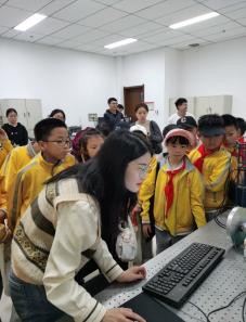 参观声信息技术实验室 声学专业尹冠军老师与硕士生杨家好向同学们展示了超声悬浮技术和便携式彩色多普勒超声系统,科学普及了超声在医学领域的应用,并且让同学们亲身体验了仪器。同学们争先恐后,表现出了强烈的兴趣。