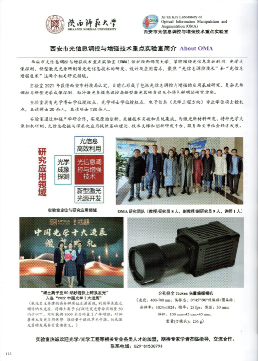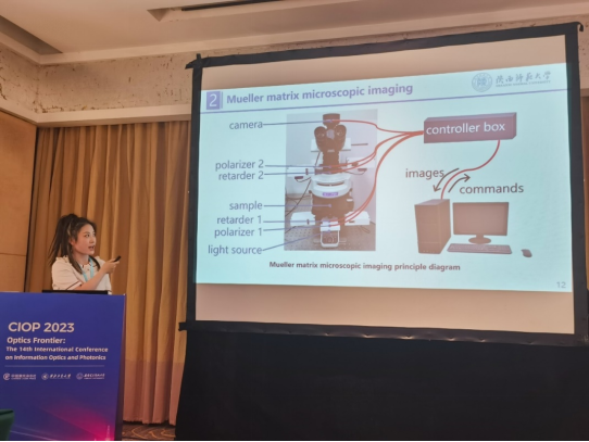 公司任立勇教授做了题目为“Full-Stokes-vector division-of-aperture polarimetric camera and its applications”的邀请报告;张正龙教授做了题目为“Luminescence of rare earth doped nanoparticle in plasmonic nanocavity”的邀请报告;魏寒月(博士研究生)、周逸夫(硕士研究生)、麻宇航(硕士研究生)和向睿(硕士研究生)分别做了题目为“Detection of cervical cancer using Mueller matrix microscopy imaging based on tissue microarray”、“A polarimetric dehazing algorithm based on Multiple Exposure Fusion”、“Resign and research of waveplate-rotating polarimeter based on Fourier series”和“Study on application of laser technology in restoration of lead white darkening in cultural relics”的口头报告。