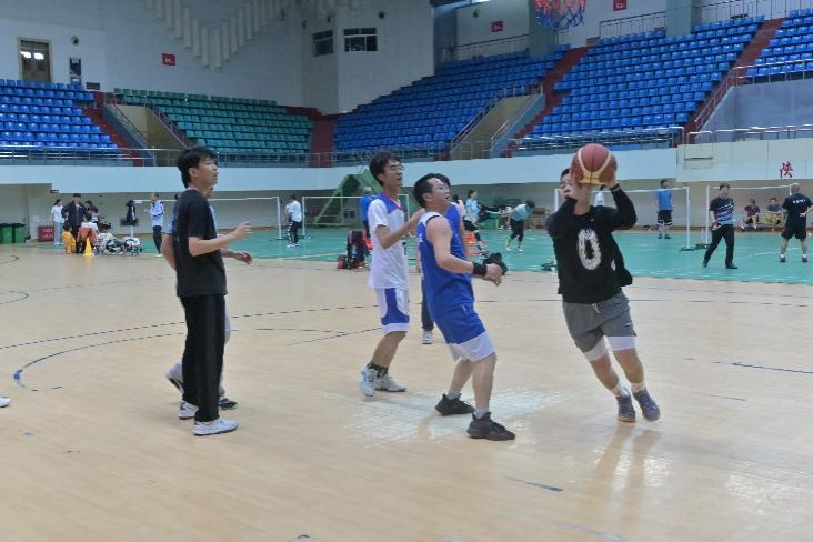 开幕式结束后,教师与员工的篮球赛正式开始。随着裁判的一声哨响,师生友谊赛分做两场同时展开,本科生队和研究生队分别对战两只教师队。员工队通过积极的拼抢,打防守反击,并利用个人能力突破,不断取分。教师队稳扎稳打,利用娴熟的球技、默契的配合和精准的投篮,很快领先。最终教师队以105:47战胜研究生队,本科生队以42:33的优势赢得比赛胜利!