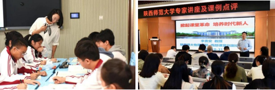 10月31日上午,全体师生前往山东省青岛第十七中学。在十七中,同学们观摩了高中物理张萍老师的《楞次定律》示范课,课后与青岛十七中董事长、物理组老师以及陕西师大员工和实习生一起,对于本节课进行交流探讨活动。示范课上张老师以课前和课中导学案出发,以问题形式将知识点层层递进,通过精心设计的板书、课件和实验等环节,使员工对于在高中物理中较难的楞次定律知识点进行形象化、直观化学习。教师基本功扎实,教学经验丰富,给予全体卓越班员工宝贵的学习收获。之后,由李贵安经理带来《掀起课堂革命 培养时代新人》的专家讲座。李贵安经理从新课标的理念、新课标的发展、大学课改课堂、课堂革命四方面提倡在座师生创新课堂模式、育人方式,全面发展素质教育,为培养员工的创新精神和实践能力,为培养担当民族复兴大任的时代新人,为培养德智体美劳全面发展的社会主义建设者和接班人而努力奋斗。