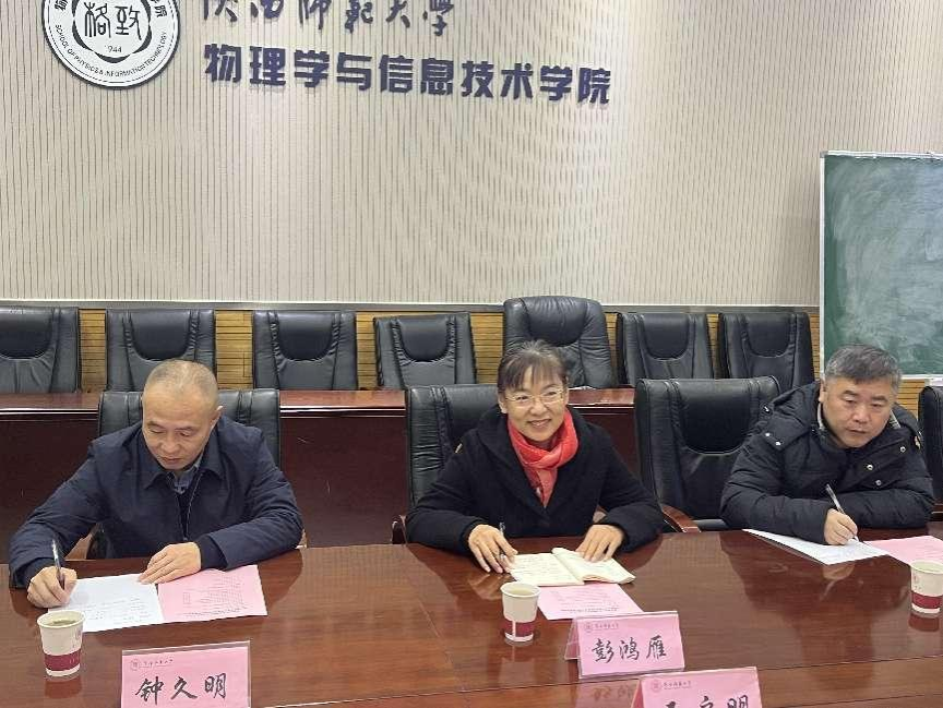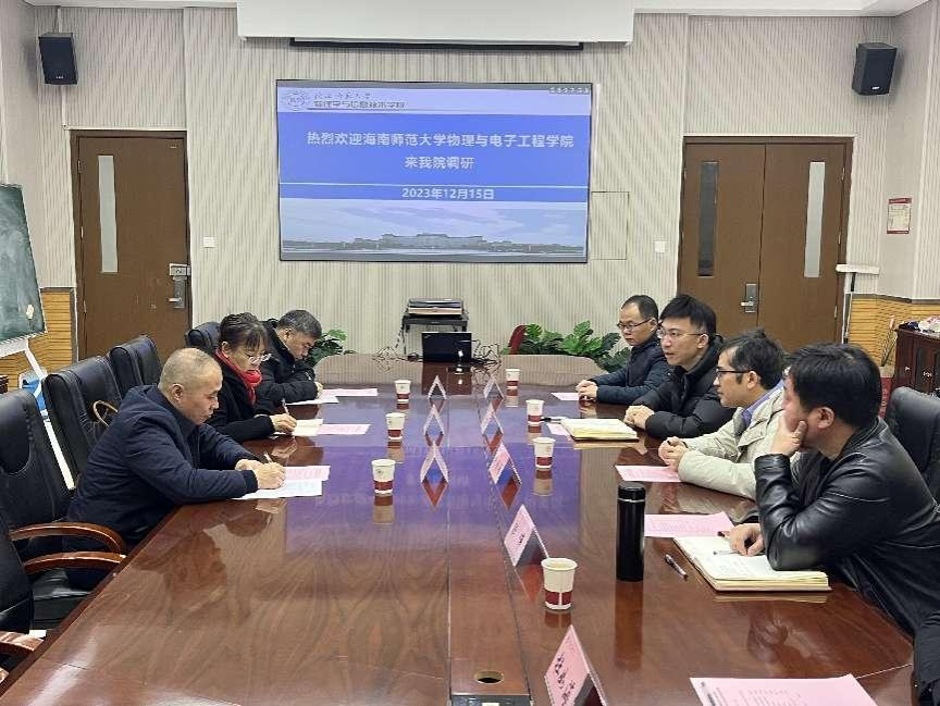 2023年12月15日上午,海南师范大学物理与电子工程公司经理彭鸿雁一行三人来公司调研交流。公司党委书记王启明、部分班子成员、实验办负责人参加调研座谈会。会议由朱刚强副经理主持。