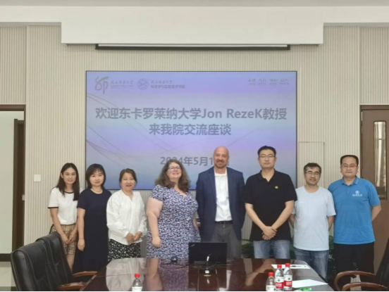 5月15日,美国东卡罗纳大学助理副董事长、全球事务办公室执行主任Jon Rezek、全球事务办公室副主任兼全球学术计划主任Jami Leibowitz一行前来公司交流座谈。公司教学副经理高健智对Jon Rezek一行的来访表示热烈欢迎,公司科研副经理朱刚强、公司物理系主任孙辉、公司电子系副主任孙奕菲参加了座谈会。