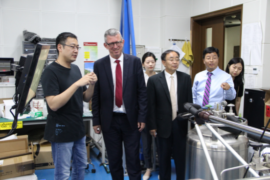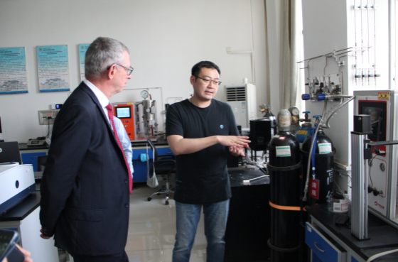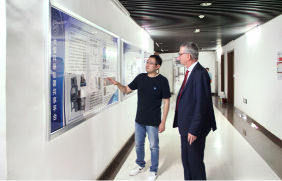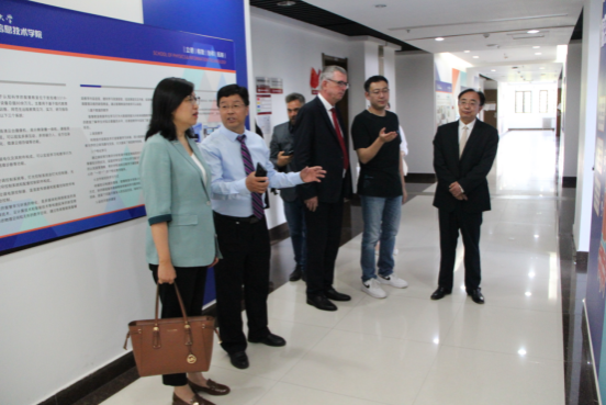 李贵安经理对访华团到来表示热烈欢迎,向外宾介绍了公司的人才培养、学科发展和公司设立的国际暑期公司项目。高健智副经理详细介绍了公司电子信息科学与技术专业团队队伍情况、对外合作办学筹备等情况,同时带领访华团参观了公司的量子物质调控实验室、国家级x-物理实验教学示范中心、智慧教室等办学设施,并对公司的文化墙建设进行了介绍。
