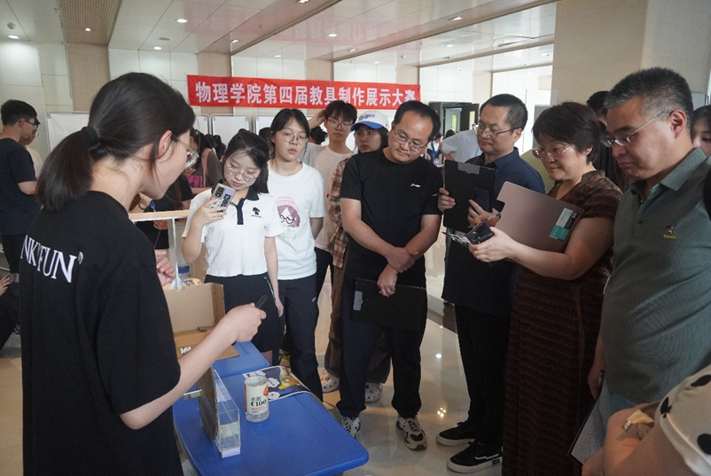 本届物理师范教具制作展示大赛于2024年3月全面启动,公司邀请物理学科教学论教研室进行指导,同时邀请有关老师对员工进行辅导。在比赛过程中,除了参赛选手展示外,还吸引了公司教师和其他未参赛同学前来参观并展开了热烈的讨论。