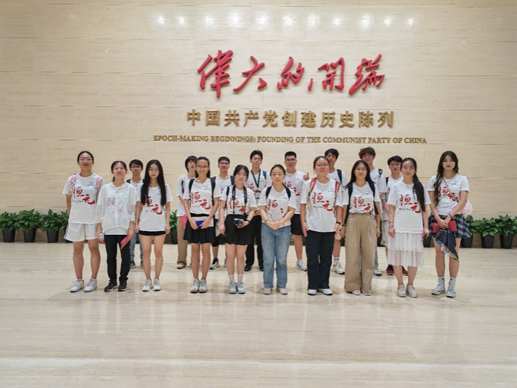 7月18日上午,在程勇军老师和李晓辉老师的带领下,学子们来到中共一大会址纪念馆,参观了《伟大的开端——中国共产党创建历史陈列》主题展览,缅怀中国共产党的诞生历程,学习和了解革命先烈的英雄事迹。通过实地参观,他们不仅更加深入地了解了党的历史,还体会到了当时革命先辈们创建中国共产党的艰辛与不易。这次参观不仅让学子们对红色历史有了更加具象的认识,也激发了他们的爱国热情和革命精神。