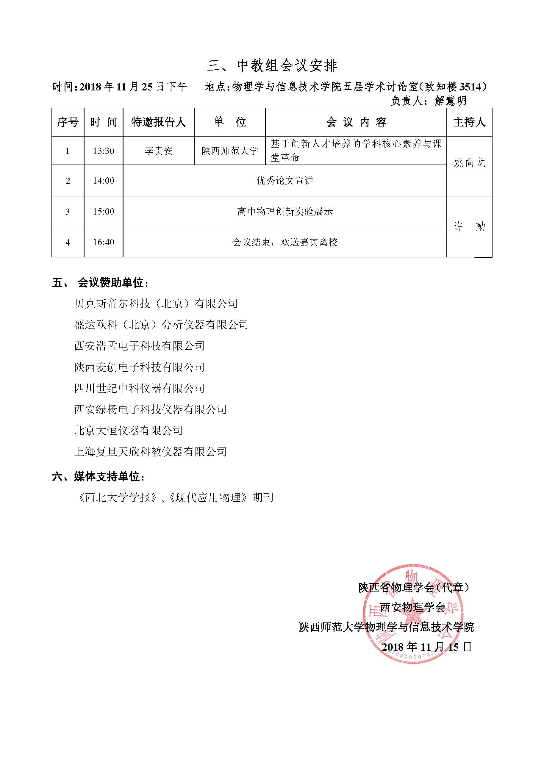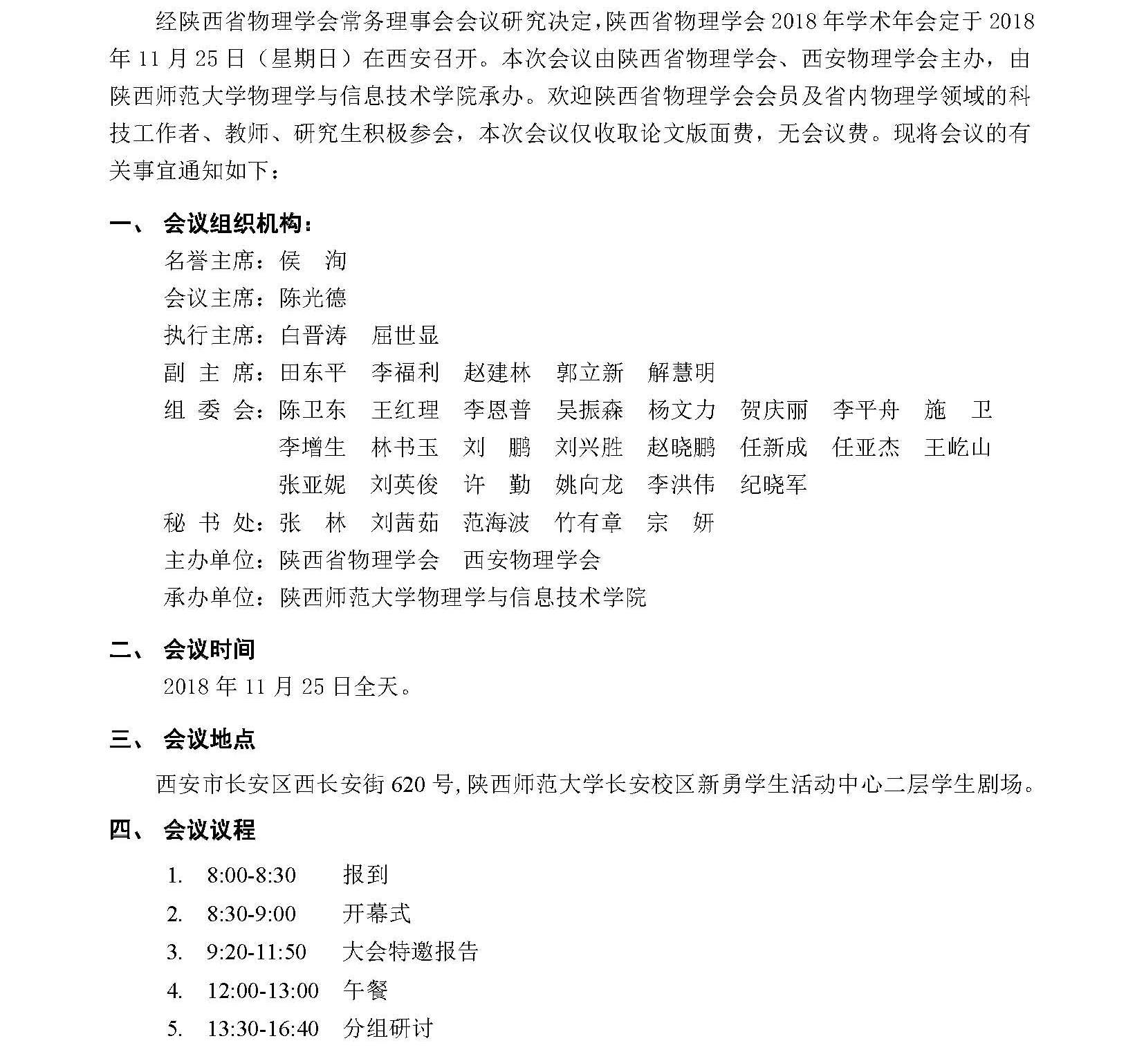 陕西省物理学会2018年学术年会第二轮通知