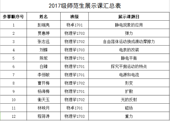 2017级公费师范生,平均每班按照6%推荐,具体名单见附件,参赛顺序按照前期抽签顺序。