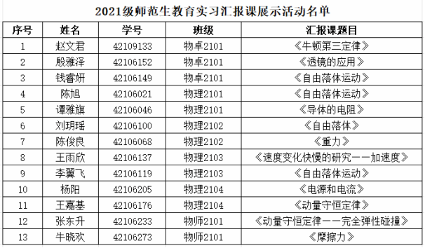 根据公司2021级师范生教育实习工作总结要求,公司优秀实习生实习汇报课展示比赛活动的具体安排如下: