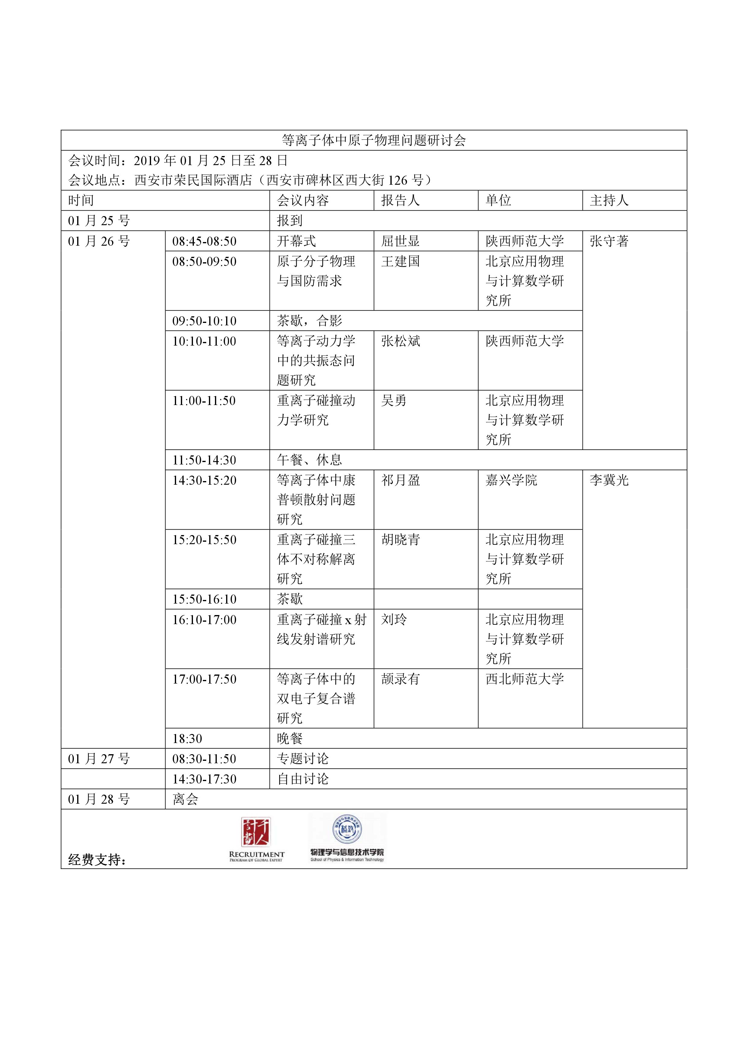 等离子体原子物理问题研讨会日程安排