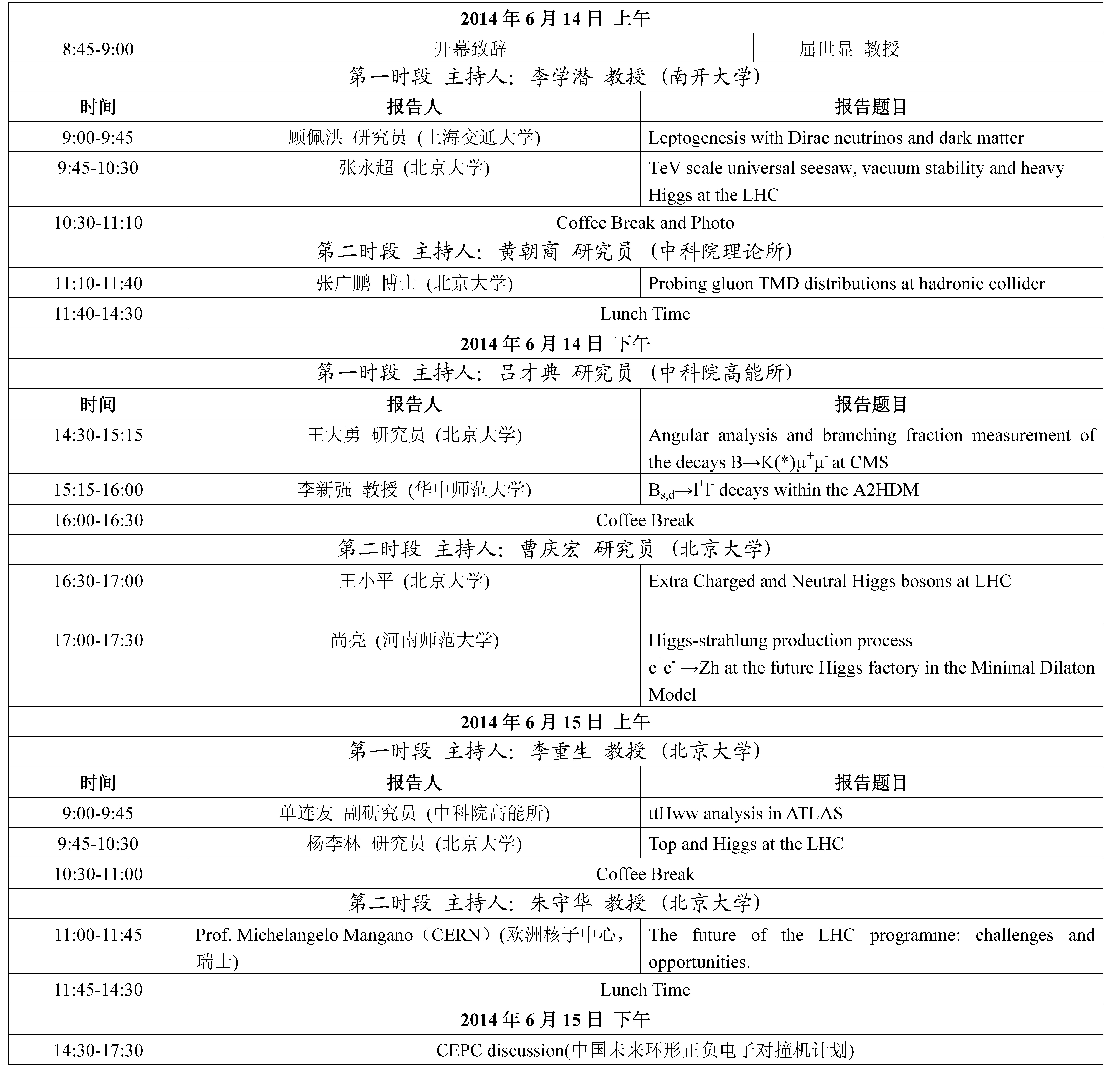 会议题目:第12届大型强子对撞机物理前沿研讨会