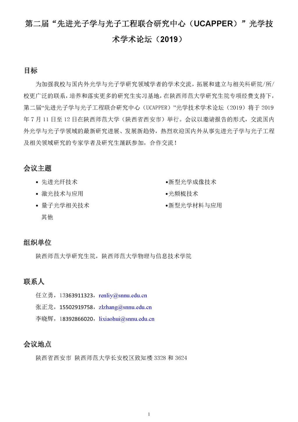 第二届“先进光子学与光子工程联合研究中心(UCAPPER)”光学技术学术论坛(2019)