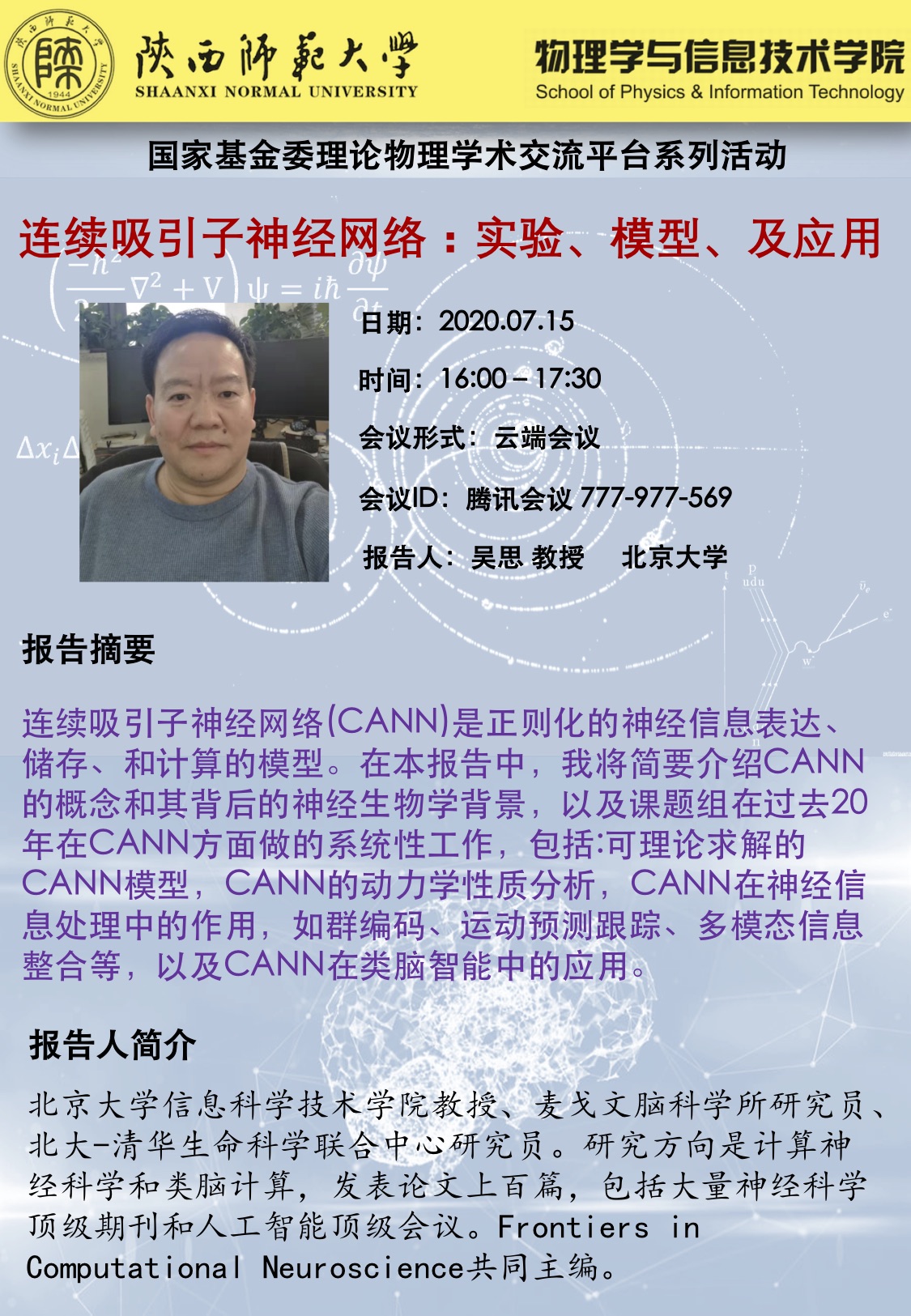 国家基金委理论物理学术交流平台系列活动:连续吸引子神经网络:实验、模型及应用