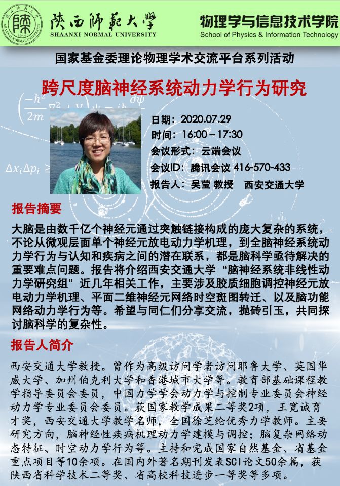 国家基金委理论物理学术交流平台系列活动:跨尺度脑神经系统动力学行为研究