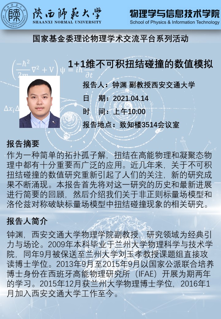 国家基金委理论物理学术交流平台系列活动:1+1维不可积扭结碰撞的数值模拟