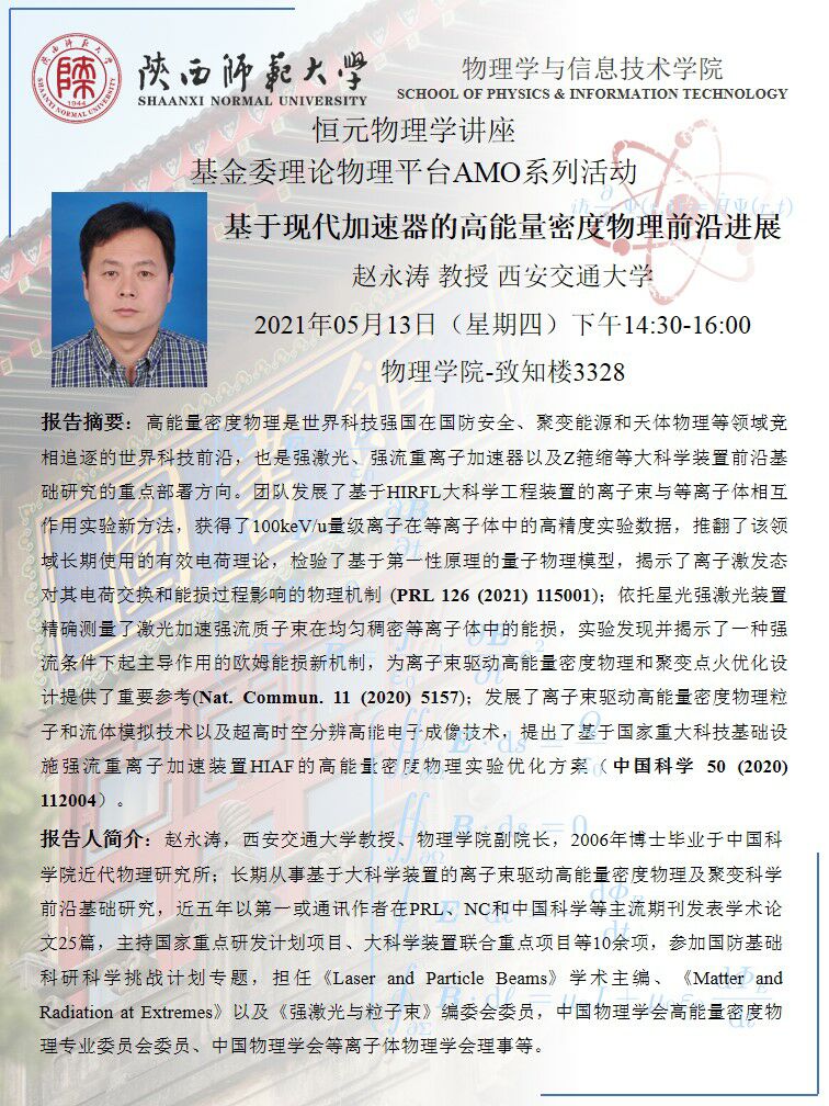 恒元物理学讲座(第196期):基金委理论物理平台AMO系列活动