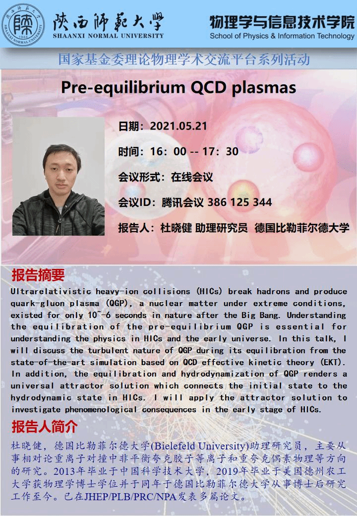 国家基金委理论物理学术交流平台系列活动:Pre-equilibrium QCD plasmas