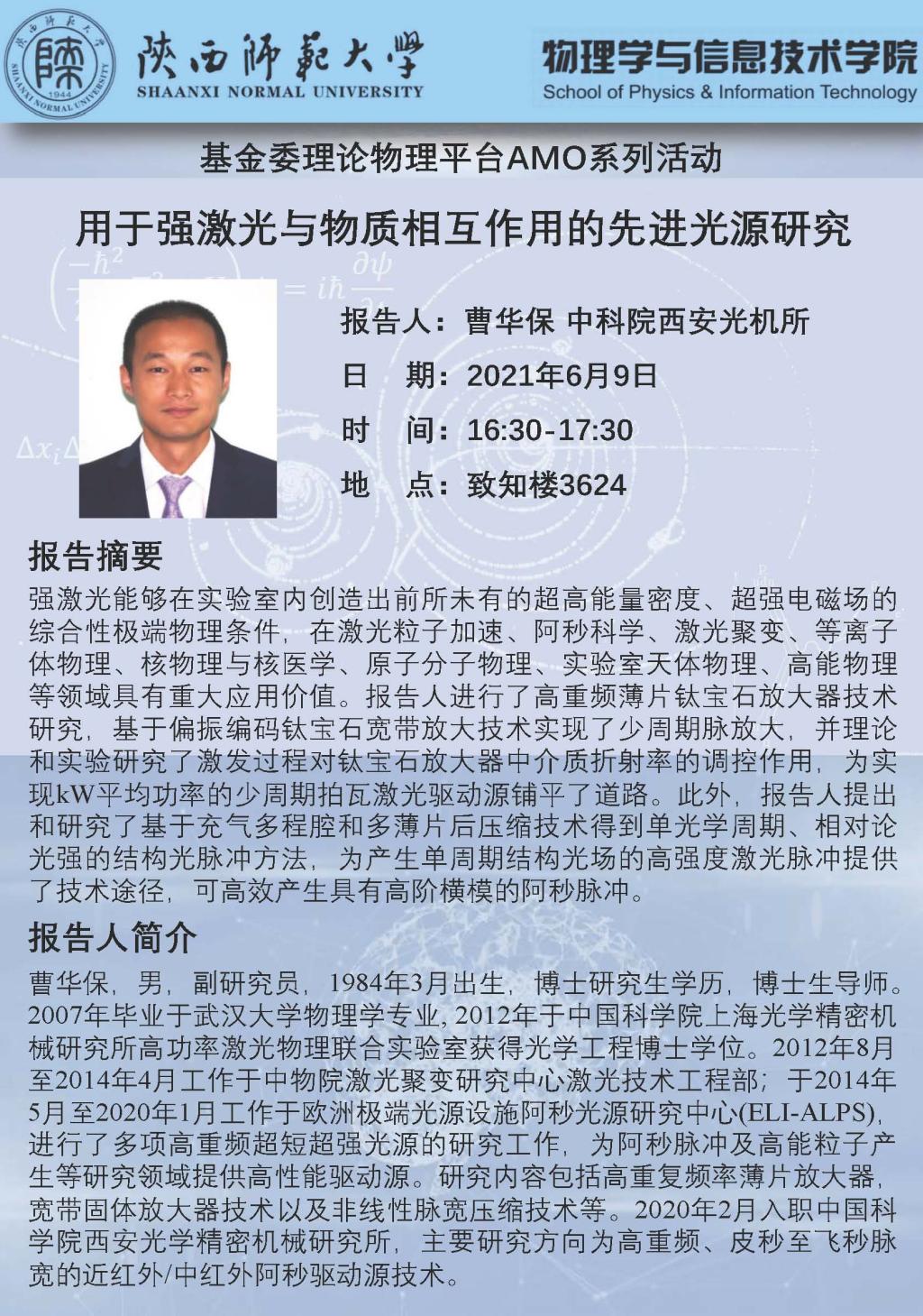 基金委理论物理平台AMO系列活动:用于强激光与物质相互作用的先进光源研究