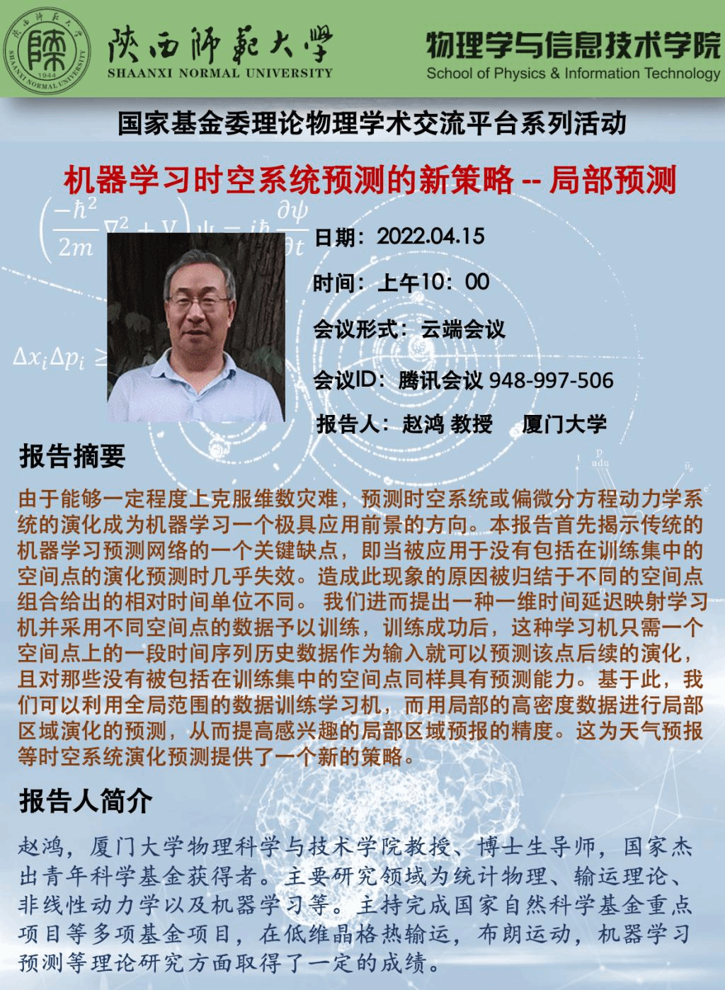 基金委理论物理平台系列活动:机器学习时空系统预测的新策略-局部预测