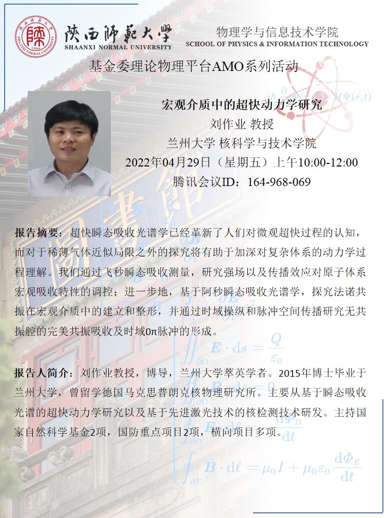 基金委理论物理平台AMO系列活动:宏观介质中的超快动力学研究