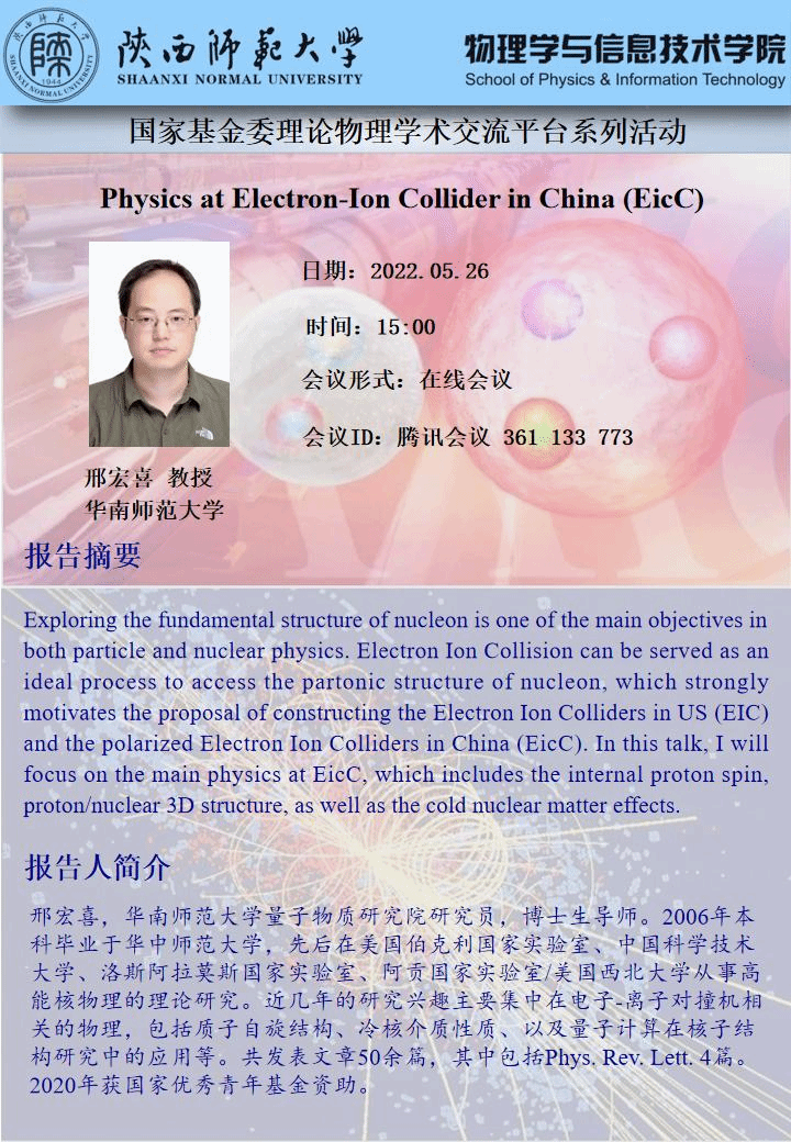基金委理论物理平台系列活动:Physics at Electron-Ion Collider in China (EicC)