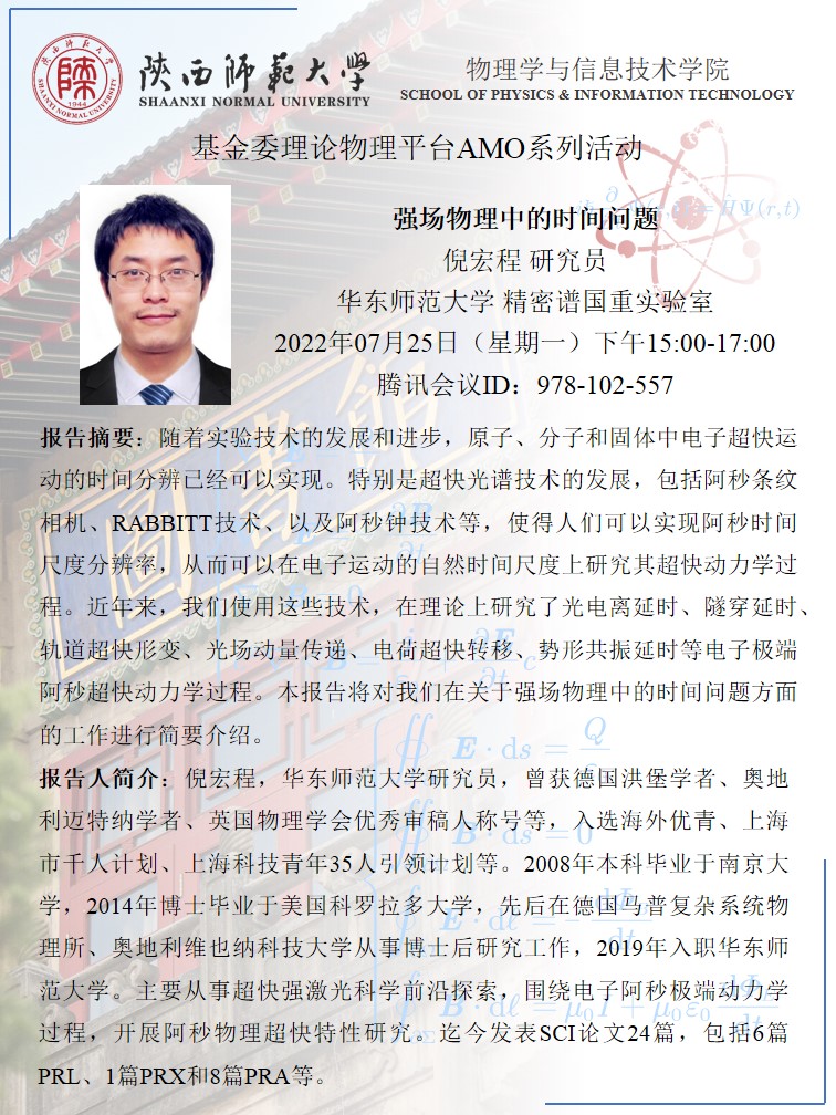 基金委理论物理平台AMO系列活动:强场物理中的时间问题