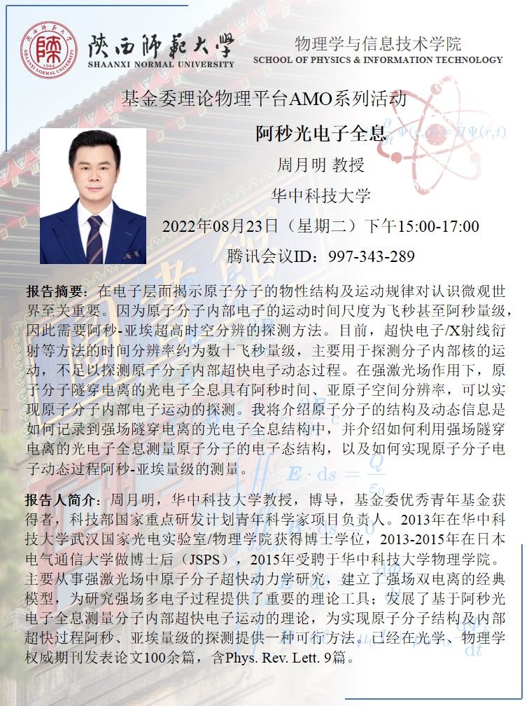 基金委理论物理平台AMO系列活动:阿秒光电子全息