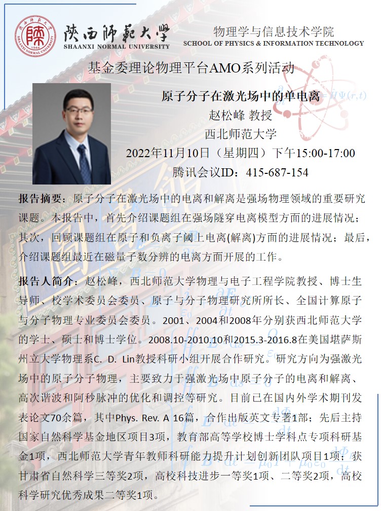 基金委理论物理平台AMO系列活动:原子分子在激光场中的单电离