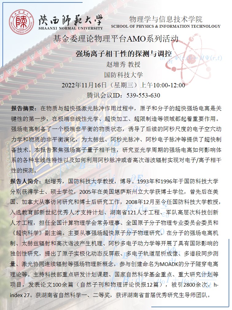 基金委理论物理平台AMO系列活动:强场离子相干性的探测与调控