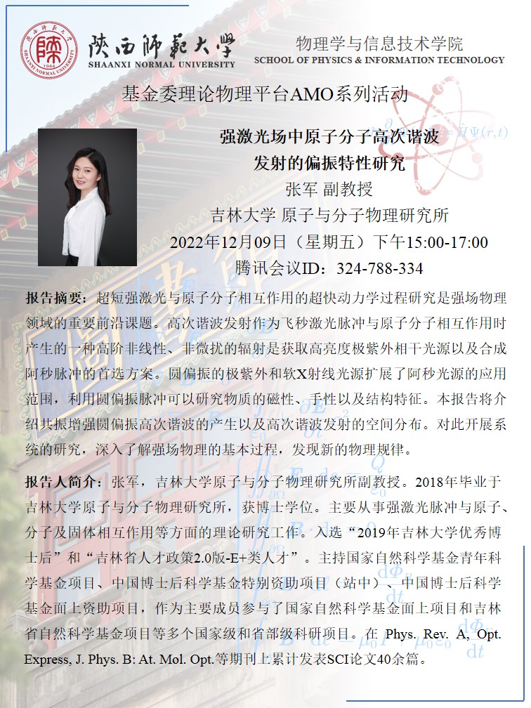 基金委理论物理平台AMO系列活动:强激光场中原子分子高次谐波发射的偏振特性研究